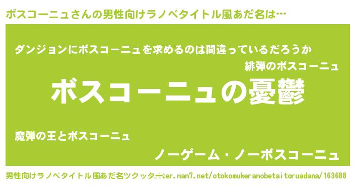 | ヒーロー風カッコイイあだ名 | 『スーパーボスコーニュ』『暗黒騎士ボス』 |