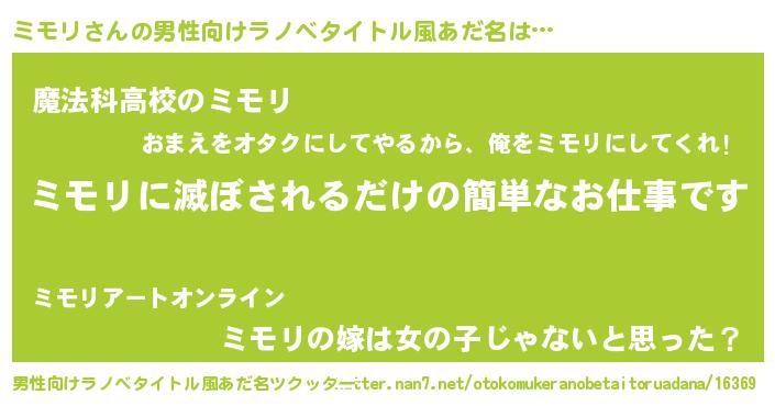| ヘコむあだ名 | 『ミモっぺ』『ミモにー』『豆乳』 |
