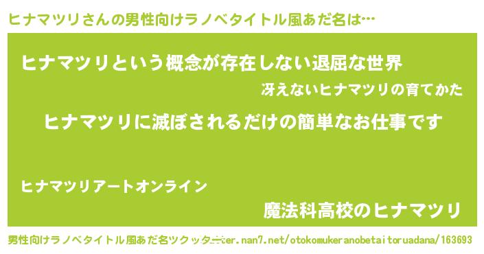 | ヘコむあだ名 | 『ヒナマツリ(小並感)』『ヒナにー』 |