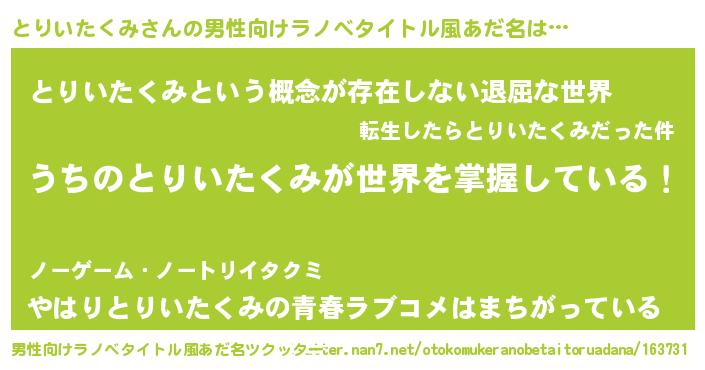| 意味不明あだ名 | 『永久保存とりいたくみ』 |