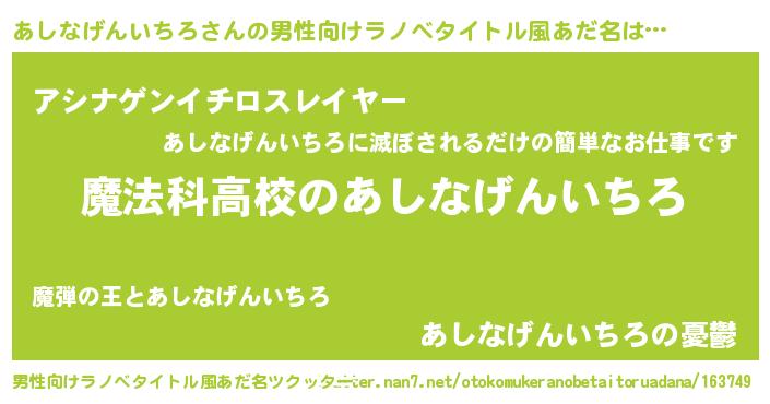 | ヒーロー風カッコイイあだ名 | 『ウルトラ戦士アシナゲンイチロ』 |