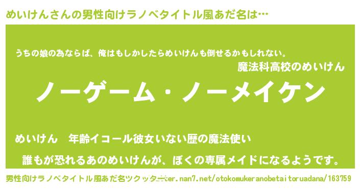 | ヒーロー風カッコイイあだ名 | 『天空の使者めいけん』『ネオメイケン』 |