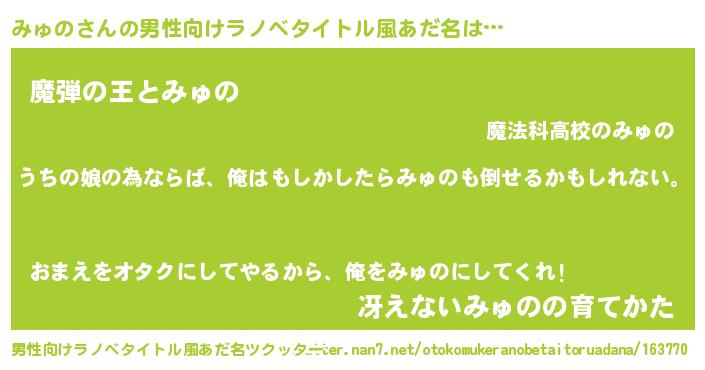 | 女子向けラノベタイトル風あだ名 | 『みゅのの婚約者』『みゅのアンティーク』 |
