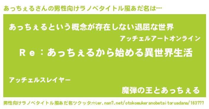 | 意味不明あだ名 | 『自称あっちぇる』『永久保存あっちぇる』 |