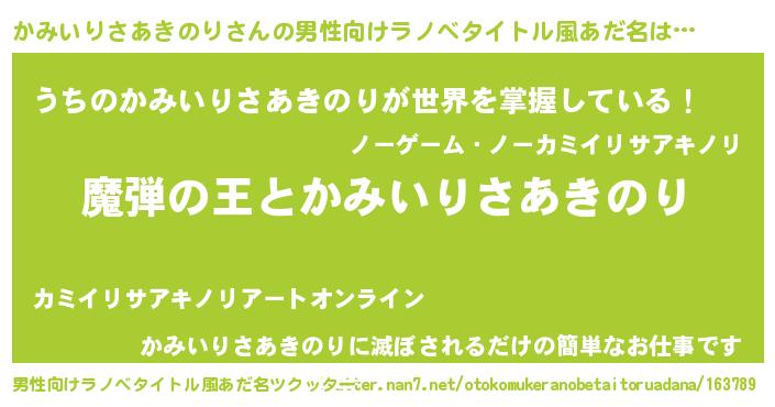 | 意味不明あだ名 | 『住所不定無職かみいりさあきのり(77歳)』 |