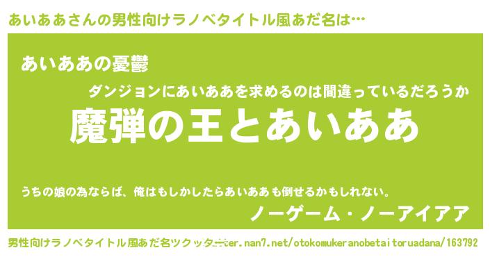 | 女子向けラノベタイトル風あだ名 | 『あいああが死なない童話 林檎のあいああの診療簿』 |