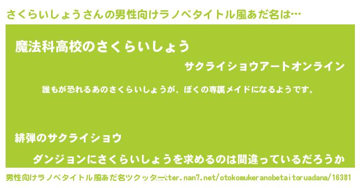 | ヘコむあだ名 | 『さくらいしょう(小並感)』『さくっ子』 |