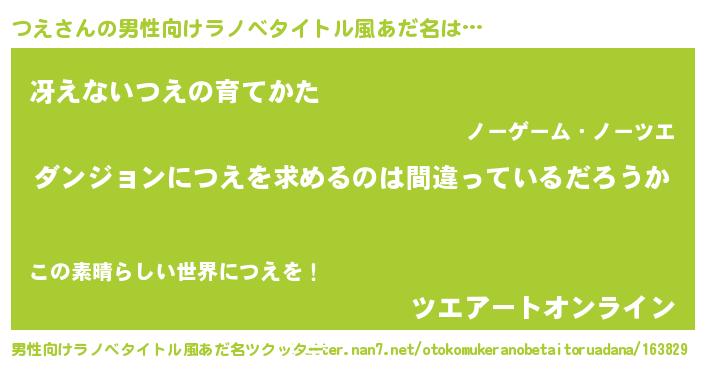 | 女子向けラノベタイトル風あだ名 | 『つえの卵を拾いまして』 |