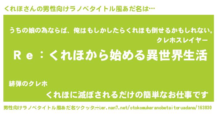 くれほさんの男性向けラノベタイトル風あだ名をツクッター!