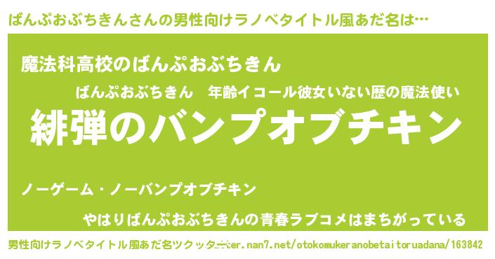 | 意味不明あだ名 | 『自称ばんぷおぶちきん』 |