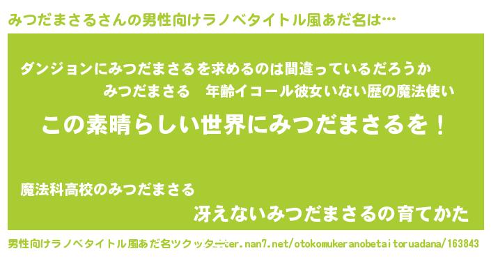 | 意味不明あだ名 | 『住所不定無職みつだまさる(56歳)』 |