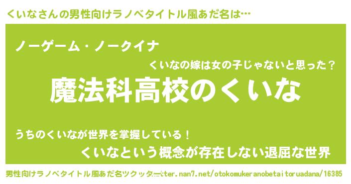 | 女子向けラノベタイトル風あだ名 | 『くいななんてお断りですっ。』 |
