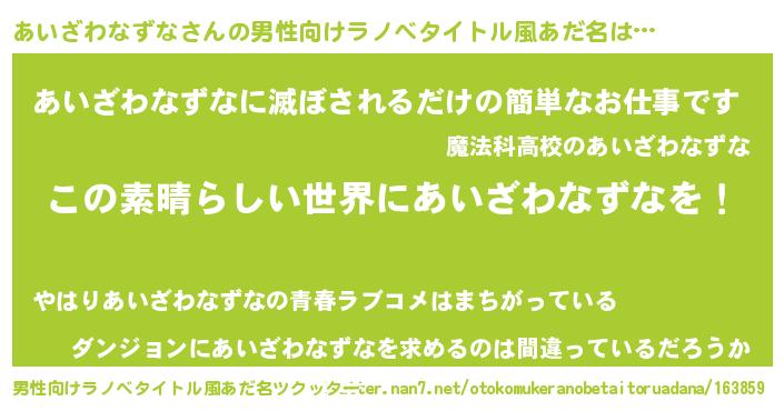 | 胡散臭い通販商品みたいなあだ名 | 『あなたにだけ特別に提供する100年もののヴィンテージワイン…その名も「あいざわなずな」』 |