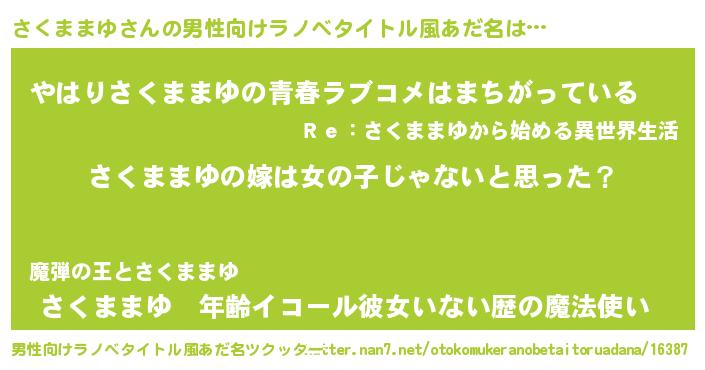 | 意味不明あだ名 | 『とにかく怪しいさくままゆ』 |