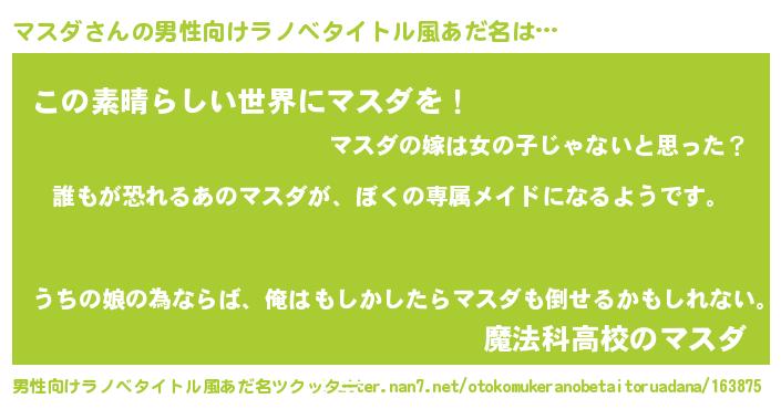 | 胡散臭い通販商品みたいなあだ名 | 『前代未聞の水素水…その名も「マスダ」』 |