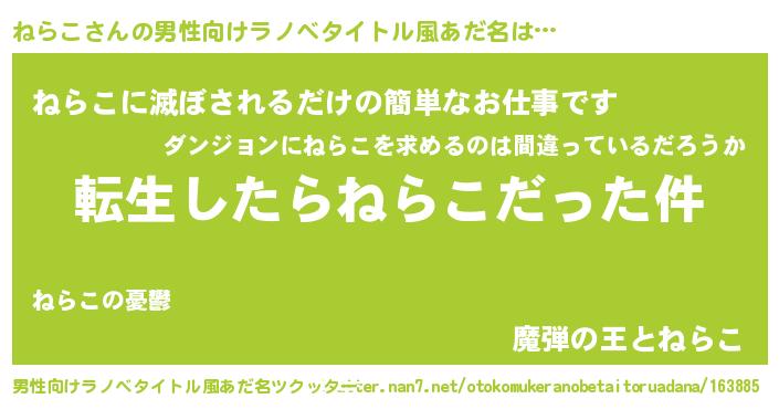 | 女子向けラノベタイトル風あだ名 | 『ねらこの玉の輿計画!』 |