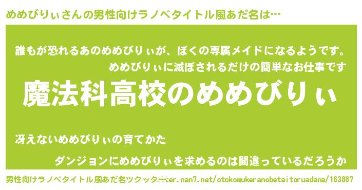 | 女子向けラノベタイトル風あだ名 | 『めめびりぃアンティーク』 |