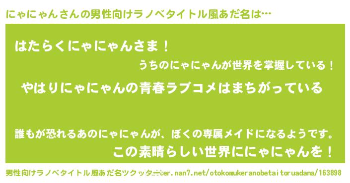 | 胡散臭い通販商品みたいなあだ名 | 『幸せが訪れる高級そうな絵画…その名も「にゃにゃん」』 |