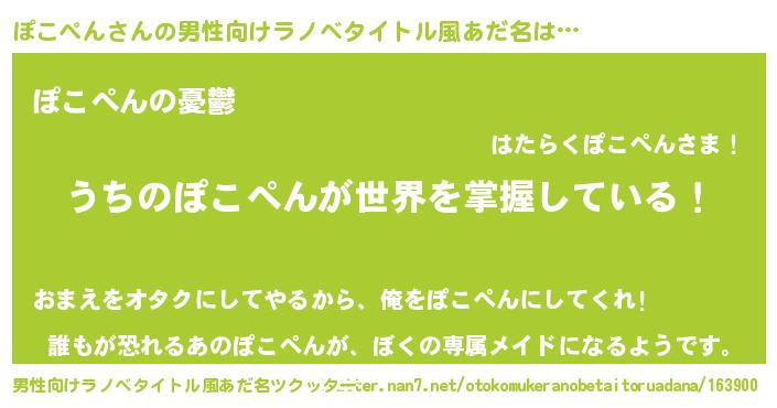 | ヘコむあだ名 | 『ぽこにゅー』『ぽこぺん(遠い目)』 |