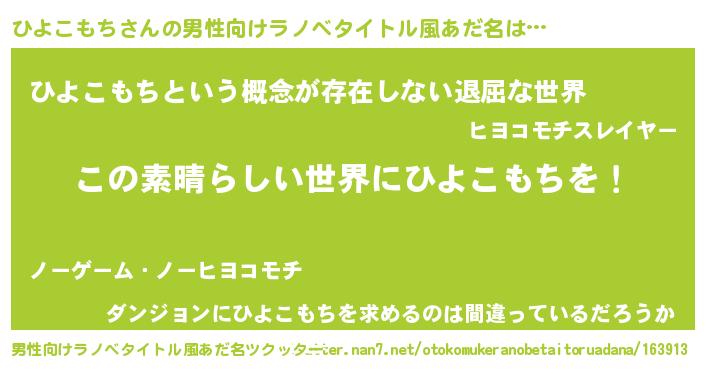 | 意味不明あだ名 | 『住所不定無職ひよこもち(95歳)』 |