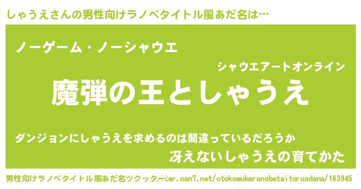 | 意味不明あだ名 | 『住所不定無職しゃうえ(71歳)』 |