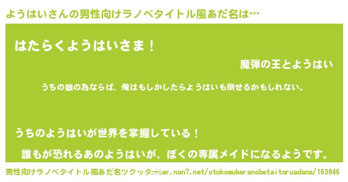 | ヒーロー風カッコイイあだ名 | 『ウルトラようはいマン』『ネオヨウハイ』 |