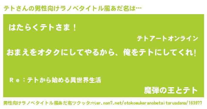 | ヘコむあだ名 | 『テトにゅー』『テトを』『酢こんぶ』 |
