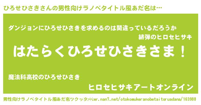 | 肩書あだ名 | 『ひろせひさきプロデューサー』 |
