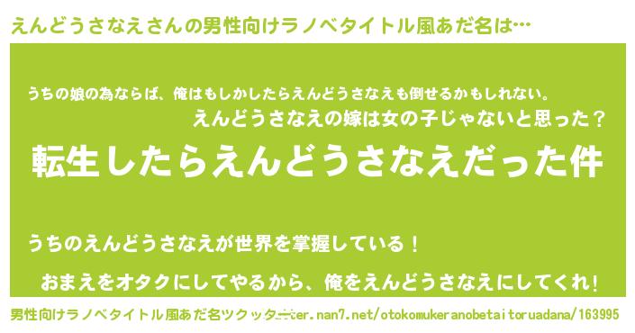 | 欧米人風あだ名 | 『トリンドルえんどうさなえ』 |