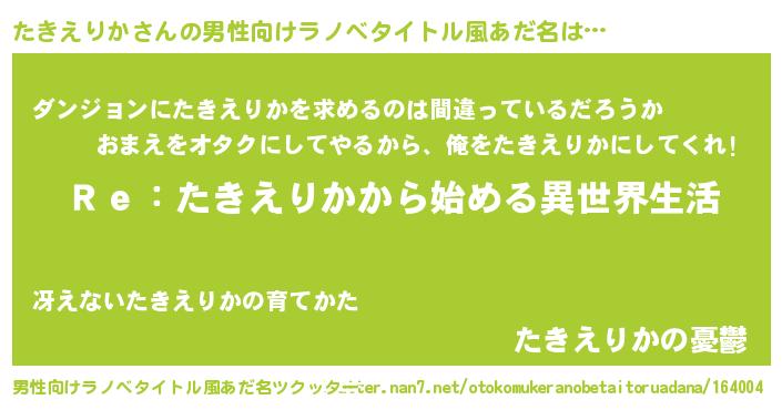 | 女子向けラノベタイトル風あだ名 | 『闇のたきえりか』 |
