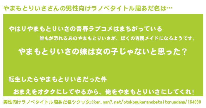 | 意味不明あだ名 | 『とにかく怪しいやまもとりいさ』 |