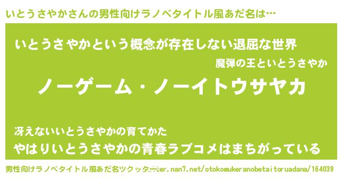 | ヘコむあだ名 | 『いとうさやか(小並感)』『酢こんぶ』 |