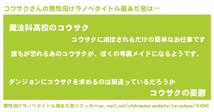 | ファンタジー風あだ名 | 『コウディッシュ』『ゼコウトゥ』 |