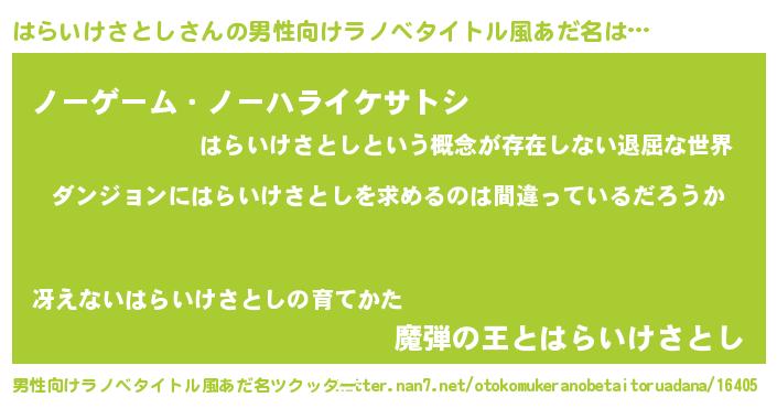 | 胡散臭い通販商品みたいなあだ名 | 『信頼と実績のネックレス…その名も「はらいけさとし」』 |