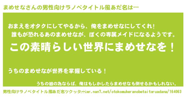 | 意味不明あだ名 | 『住所不定無職まめせな(93歳)』 |