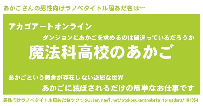 | 女子向けラノベタイトル風あだ名 | 『あかごなんてお断りですっ。』 |