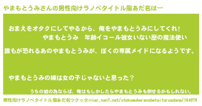 | 女子向けラノベタイトル風あだ名 | 『異世界でカフェやまもとうみを開店しました。』 |