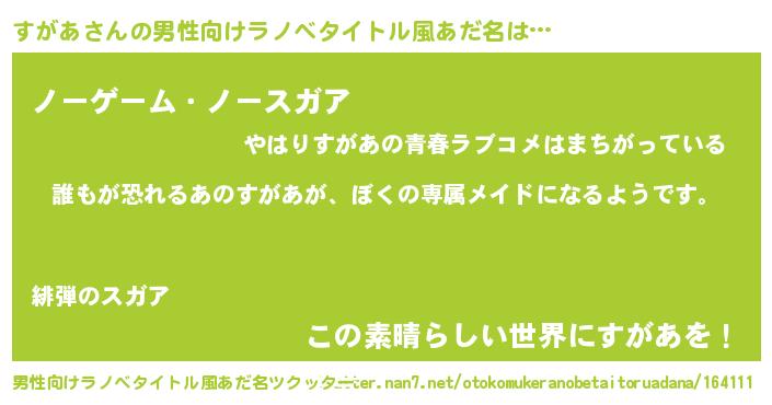 | ヒーロー風カッコイイあだ名 | 『ネオスガア』『慈愛の使者すがあ』 |