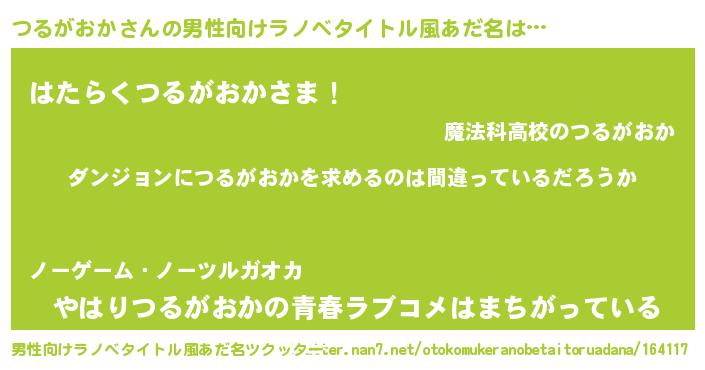 | 女子向けラノベタイトル風あだ名 | 『つるがおかは平凡を望む』 |