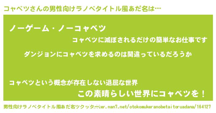 | 女子向けラノベタイトル風あだ名 | 『コャベツは平凡を望む』 |