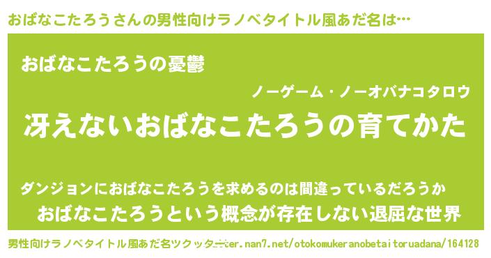 | 胡散臭い通販商品みたいなあだ名 | 『モテモテ間違いなし霊験あらたかなお札…その名も「おばなこたろう」』 |
