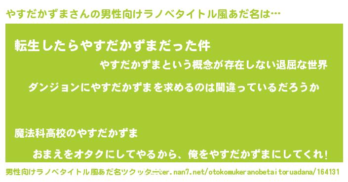 | 女子向けラノベタイトル風あだ名 | 『やすだかずまは平凡を望む』 |