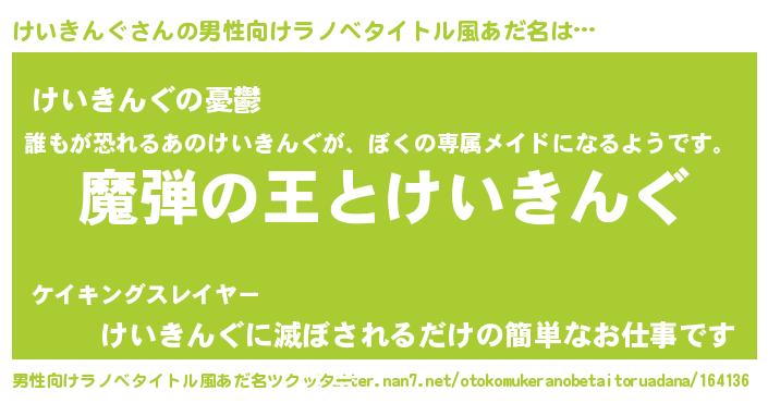 | 意味不明あだ名 | 『住所不定無職けいきんぐ(3歳)』 |
