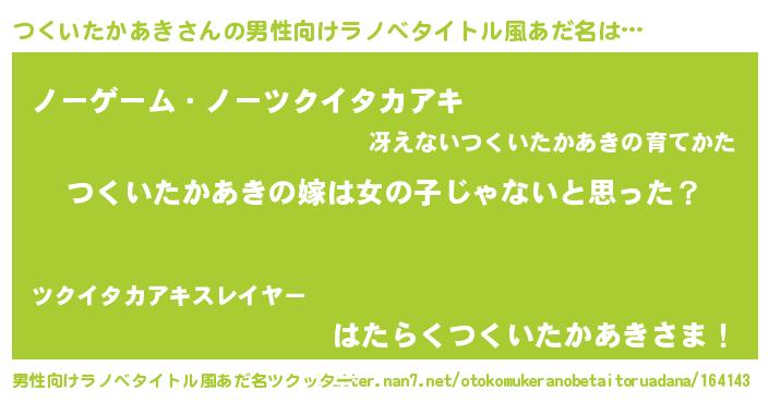 | 女子向けラノベタイトル風あだ名 | 『つくいたかあきの卵を拾いまして』 |