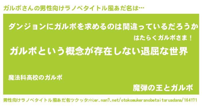 | 意味不明あだ名 | 『永久保存ガルボ』『自称ガルボ』 |