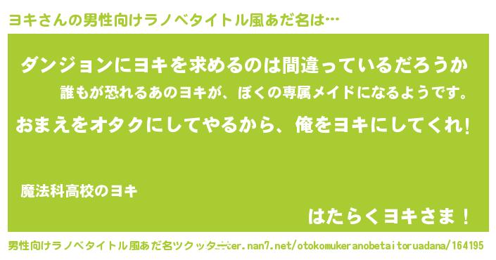 | ポケモン風あだ名 | 『ヨックウザ』『ヒヨキ』『ヨキゴンZ』 |