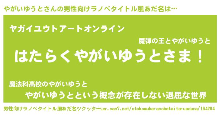 | 胡散臭い通販商品みたいなあだ名 | 『モテモテ間違いなしブレスレット…その名も「やがいゆうと」』 |