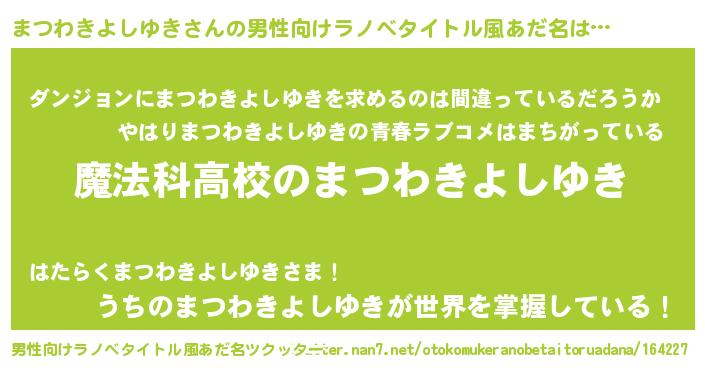 | 女子向けラノベタイトル風あだ名 | 『まつわきよしゆきなんてお断りですっ。』 |