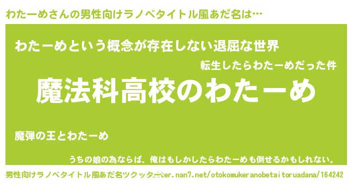 | 女子向けラノベタイトル風あだ名 | 『わたーめアンティーク』 |
