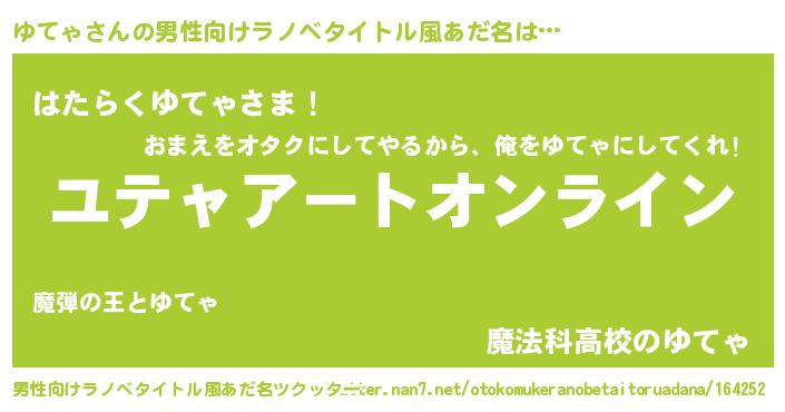 | ヘコむあだ名 | 『ゆてにゅー』『ゆてゃ(小並感)』 |